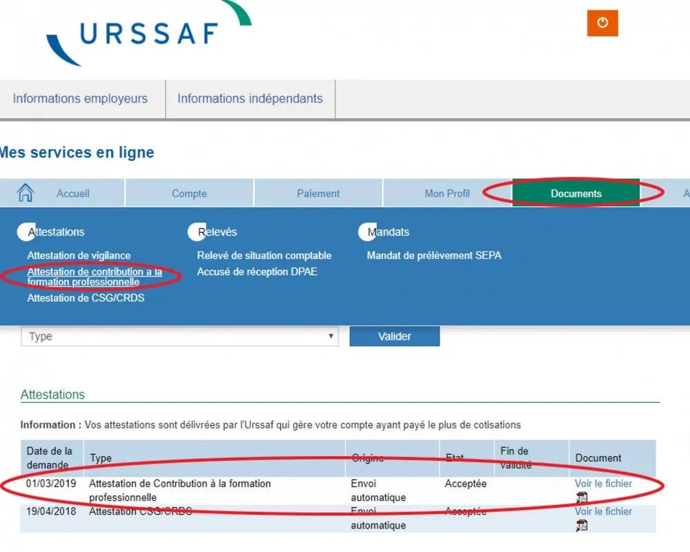 Si vous êtes indépendant et que vous souhaitez obtenir un financement pour vos formations, il vous sera demandé de transmettre votre attestation CFP (Contribution à la formation professionnelle). Cette attestation est diponible auprès de l'URSSAF. Voici comment procéder pour l'obtenir :
